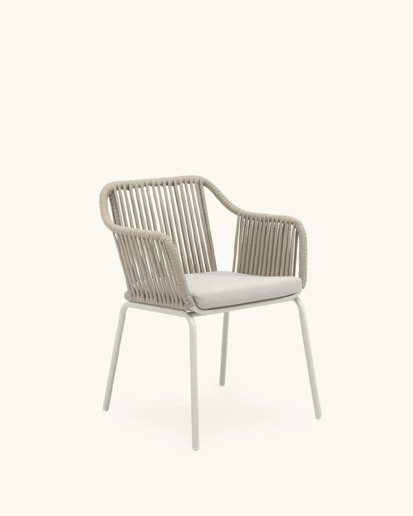 Pack 4 sillas de exterior Brittany con estructura de cuerda resistente y patas de acero en beige