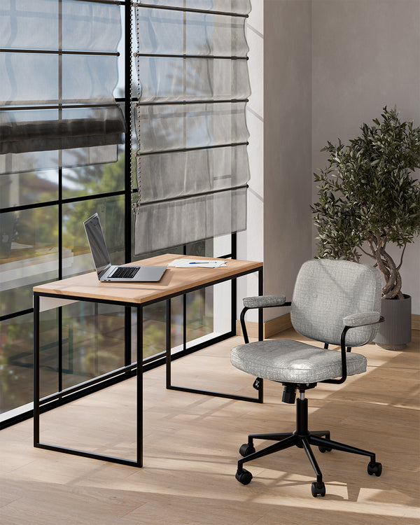 Crea un entorno de trabajo cómodo, estilizado y eficiente con el conjunto de escritorio Rory y silla Edina. Este dúo es ideal para quienes buscan funcionalidad sin renunciar al diseño.